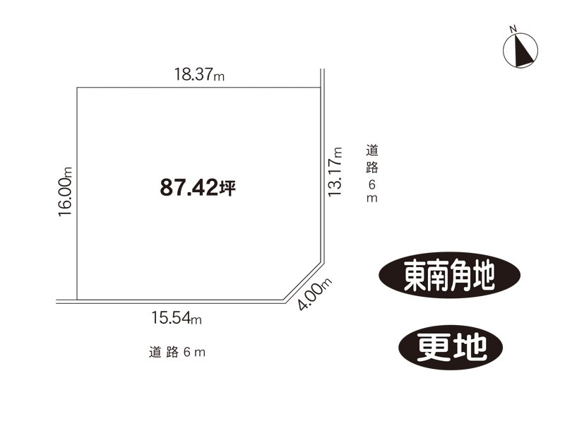 | 接道状況等 | ⼆⽅(⾓地) (東,6m,公道)(南,6m,公道) | ||