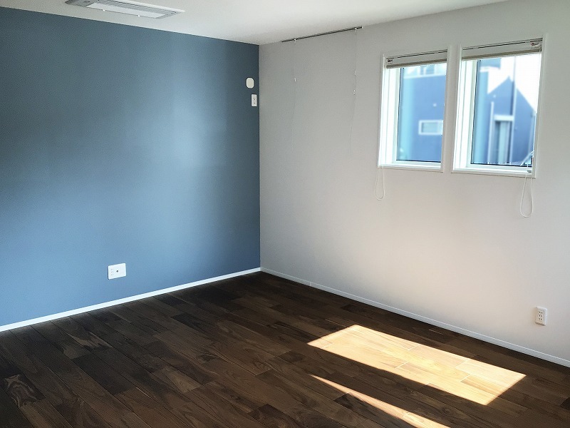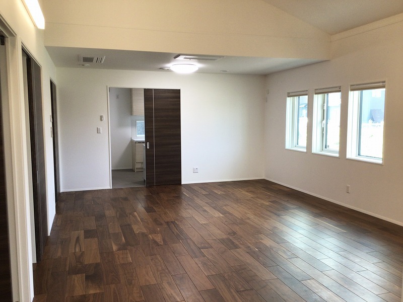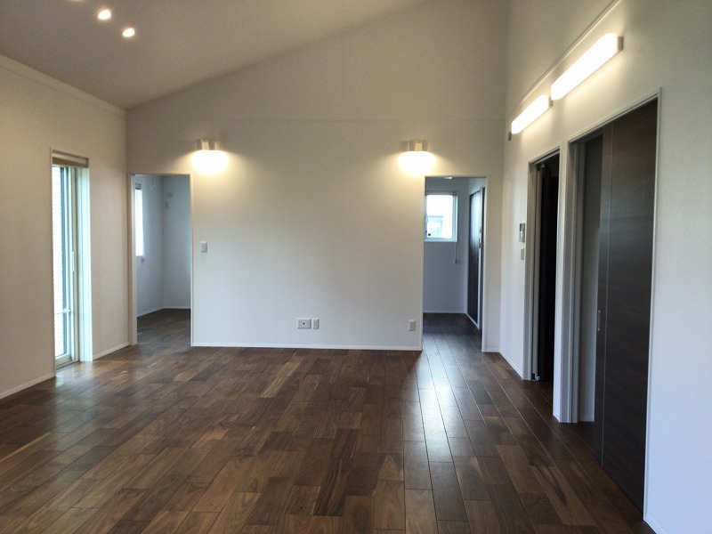 奥に見えている扉は西側の洋室です。勾配天井なので、開放感があります