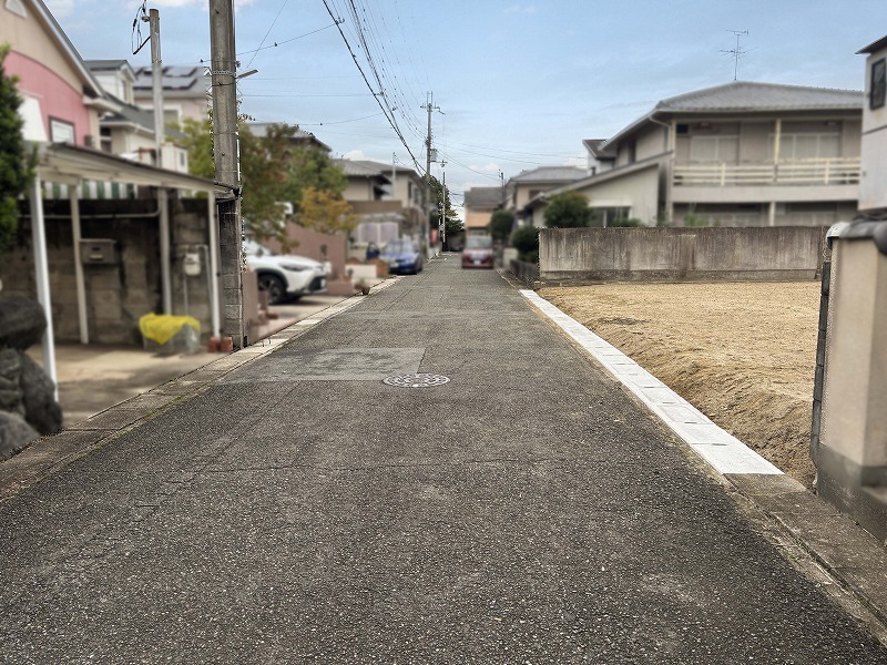 82坪/道路との高低差少ない/更地/道路西側約5m