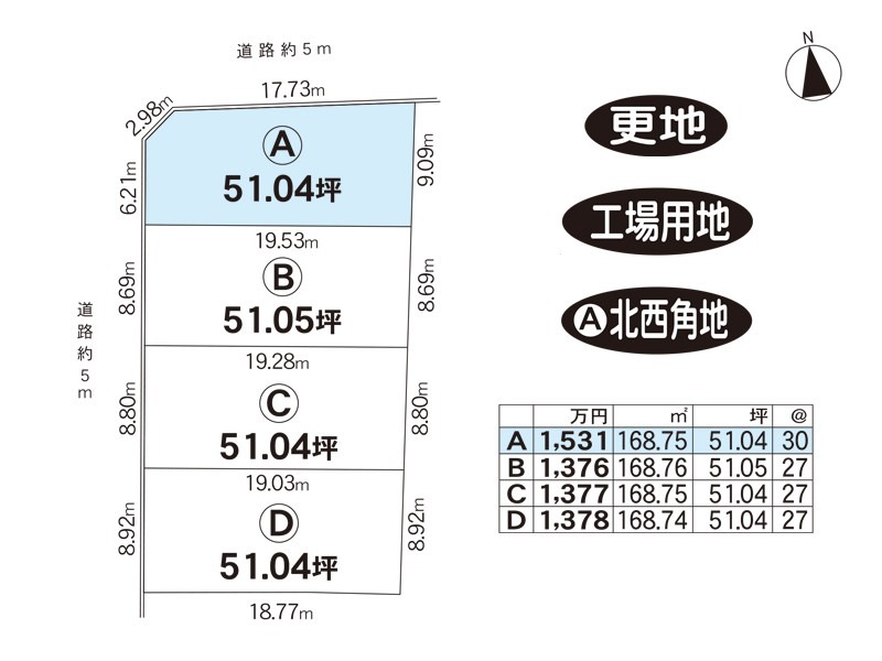 | 土地面積(m²/坪) | 168.75m²(51.04坪) | 地目,用途地域 | 宅地,準工業地域 |