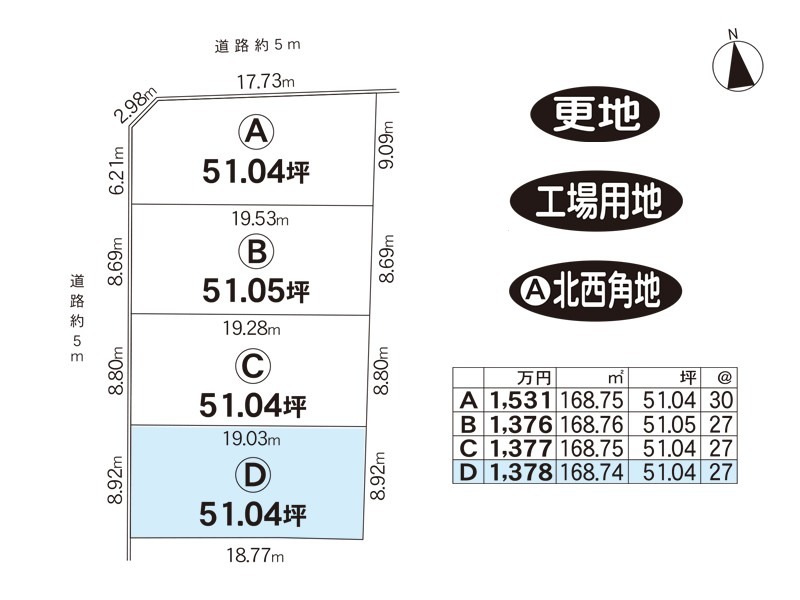 | 土地面積(m²/坪) | 168.74m²(51.04坪) | 地目,用途地域 | 宅地,準工業地域 |