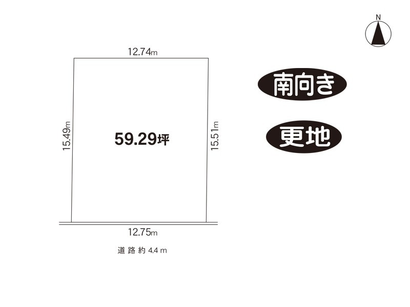 | 接道状況等 | ⼀⽅ (南,約4.4m,公道) | ||