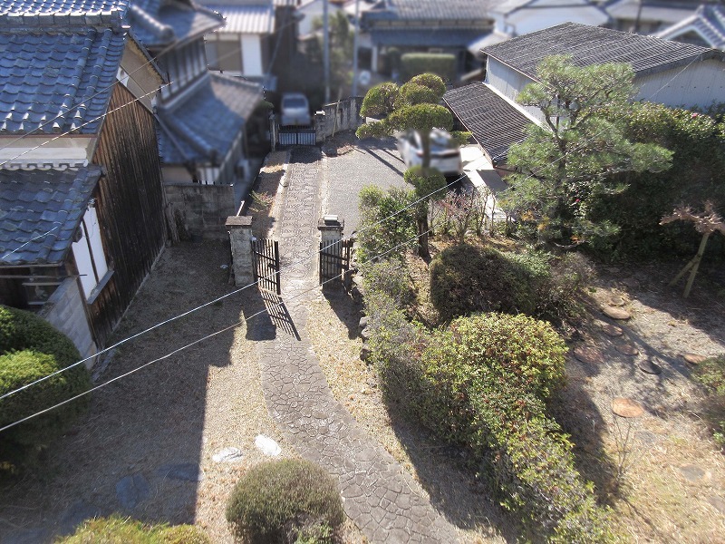 母屋からの眺望。左側が蔵、右側に作業小屋があります