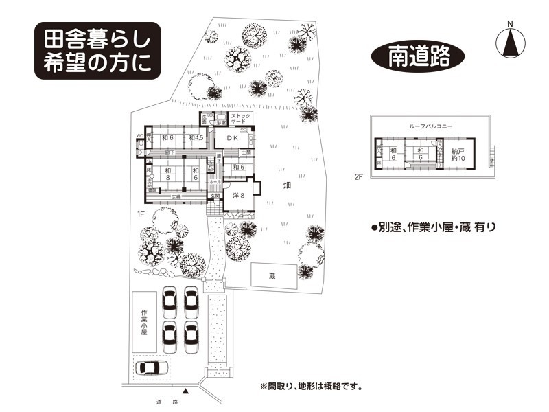 田舎暮らし希望の方に/南道路/別途作業小屋・蔵有/間取り、地形は概略です
