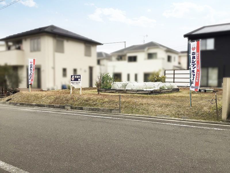 南道路に面した70坪の土地です/道路との段差が少ない整形地です/小学校へ430m、最寄りの公園へ60mです/国道163号線 城址公園交差点へ810mと車でのお出かけも便利です/建築条件がないので、お好きなハウスメーカーや建築プランを自由に選べます
