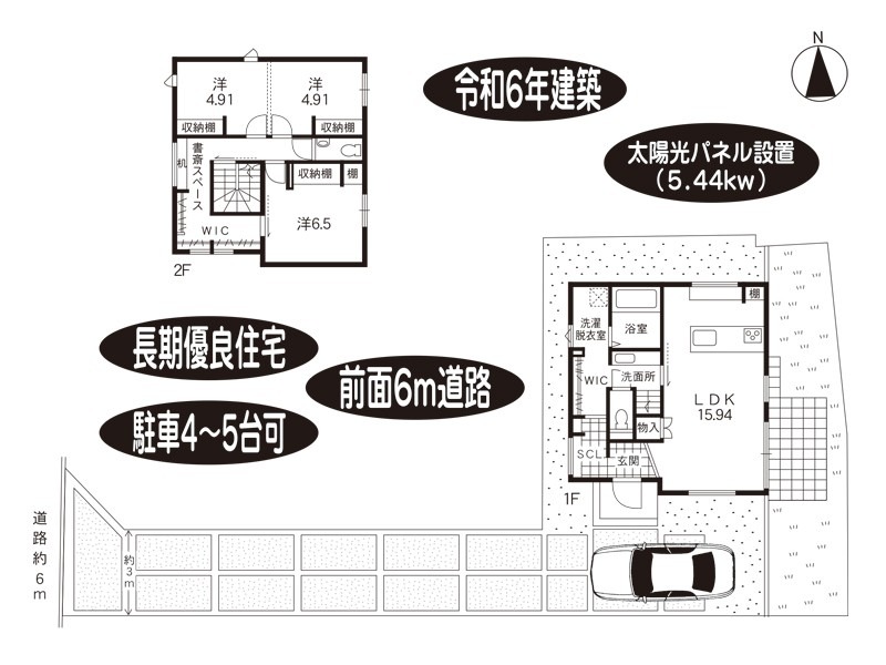 令和6年建築/太陽光パネル設置(5.44kw)/駐車4~5台可能(車種による)/長期優良住宅/前面6m道路