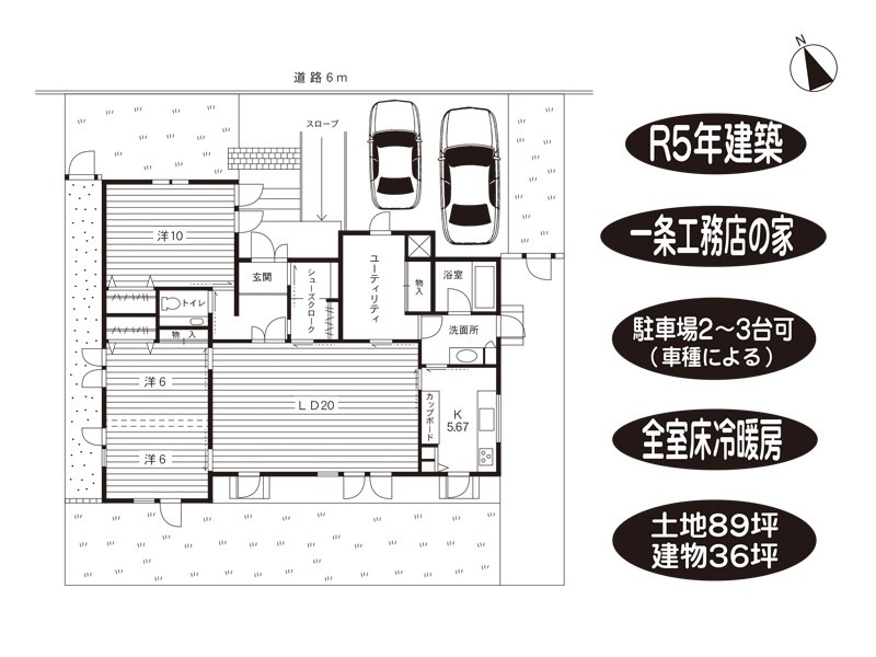 令和5年建築/一条工務店の家/駐車2~3台可(車種による)/全室床暖房/土地89坪、建物36坪