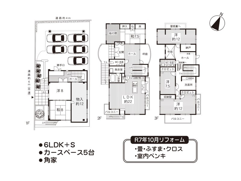 6SLDK/カースペース5台/角家/令和7年10月リフォーム実施(畳・襖・クロス・室内ペンキ)