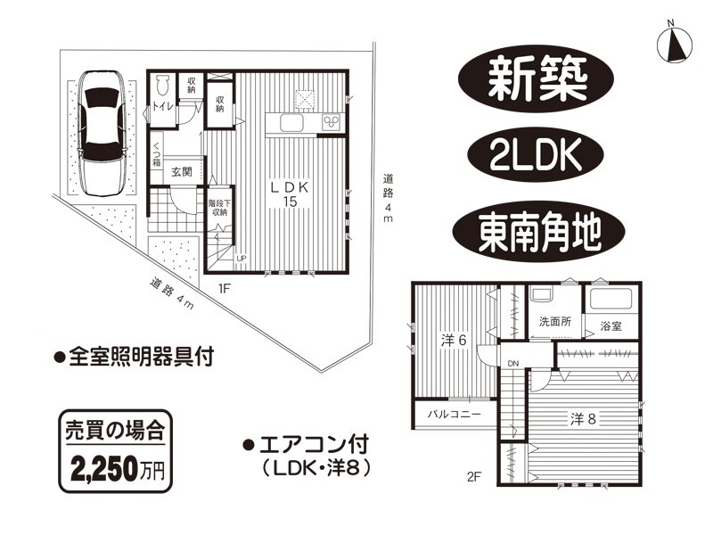 B号棟/新築/東南角家/2LDK/全室照明器具付/LDKエアコン付