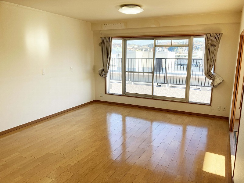 マンションの最上階の角部屋です/48平米のルーフバルコニー/平成29年12月リノベーション済(キッチン、浴室、トイレ、洗面、クロス、畳、襖)/令和7年12月大規模修繕実施(外壁塗装他)/ペット可(規約による制限有)バス停徒歩3分/徒歩圏内にコンビニ、スーパー、総合病院などがあります